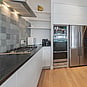 Precise planning and clever design allowed for covered, secure parking. Next on the list was maximising the spectacular views and privacy afforded by the elevation at the back of the site. The home was extended to add a second living space here. A full-width balcony on the upper level soaks up the sunshine and light, while providing shelter for the paved outdoor living space below. Although the house has essentially been rebuilt, it retains its original character – right down to replicating and repairing the pressed-metal ceilings and supporting and retaining a redundant, now decorative, original brick chimney. The result is a charming, yet modern home that seamlessly fits into its neighbourhood.