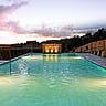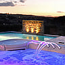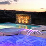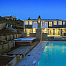 With the large sloping site, landscaping became a major design feature. Retaining walls, exterior steps and terraced levels shape the property into functional, inviting outdoor spaces. The pool, water features and extensive lighting work together to create a resort like atmosphere that feels calm by day and beautifully dramatic at night.