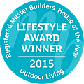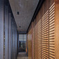 The flat-roofed structures, sheathed in a taught filigree-like timber skin, form a delicate counterpoint to the stone bulk of the existing abode. Sheltered alfresco spaces have been created between the additions and the established home.