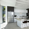 The kitchen was remodelled, with brushed stainless-steel benchtops, integrated appliances and tailored splashbacks. High-performance glazing systems frame the transition between indoors and out, including pivot-hung glass doors, full-height sliders, and custom balustrades. Throughout, detailing is crisp and clean, from the flush-mounted sinks and soft-close drawers to the sculpted stair with feature timber handrails.