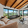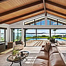 Let’s start with the north-facing area with the existing pool and palms. The project team crafted a water-facing extension that ties so seamlessly with the existing living and dining areas it looks like it has always been there. Sliders, skylights, clerestory windows and bifolds ensure this room with a raked ceiling is bright and breezy. Adjoining this space and connected by bifolds is a new cabana with a barbecue and outdoor fireplace. Together, this is entertaining central.