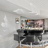 Let’s start with the north-facing area with the existing pool and palms. The project team crafted a water-facing extension that ties so seamlessly with the existing living and dining areas it looks like it has always been there. Sliders, skylights, clerestory windows and bifolds ensure this room with a raked ceiling is bright and breezy. Adjoining this space and connected by bifolds is a new cabana with a barbecue and outdoor fireplace. Together, this is entertaining central.