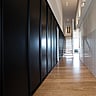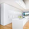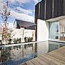 To this end the open plan ground floor reads as a glazed conservatory space nestled under a dark cedar container, a suspended black box providing a dynamic retreat for the three main bedrooms. The light filled heart of the home is connected vertically through twin voids highlighting the spacious character of the home. The garage, guest quarters and services are secured in a black color-steel box to the south of the site.