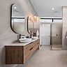 Architectural detailing continues outside, where vertical aluminium blades at the entrance add privacy and a sculptural element to the home’s silhouette. Sustainability, though subtle, is delivered through careful material choices and the retention of the original garage structure - a decision that preserved character and minimised waste. Every upgrade feels cohesive and complete.