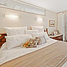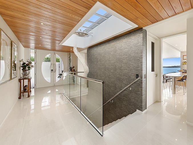 The entrance gallery makes a stunning first impression with its glazed roof, oiled American oak ceiling and glass stair with polished steel handrails. Other divine details of this three-bedroom residence include fine-linen wallpaper and Italian ceramic floor tiles in the gallery, kitchen, laundry and bathrooms. Deep pile carpet delivers modern comfort in the living spaces, study and sleeping quarters.